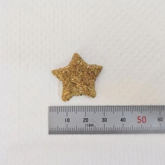 うさぎさん大好きなイチゴバナナ味のおほしさまクッキー12枚いり。コインサイズなので、こまめにあげられます。原材料は、チモシー、アルファルファ、おから、そして、フレーバーのイチゴとバナナ。緑のパッケージもフレーバーは同じです。