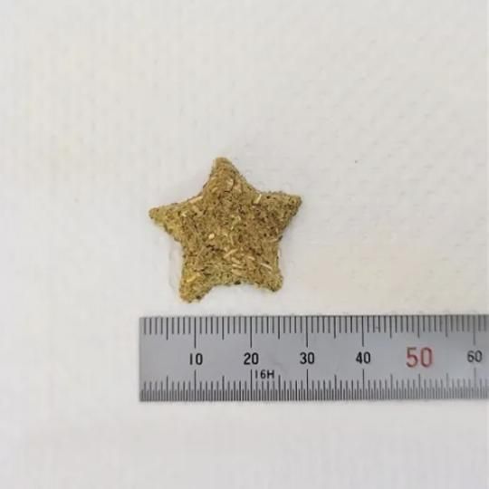 柑橘系のさわやかな酸味とマンゴーの甘い香りが魅力のマンゴーオレンジ味のおほしさまクッキー12枚いり。コインサイズなので、こまめにあげられます。原材料は、チモシー、アルファルファ、おから、そして、フレーバーのマンゴーとオレンジ、うさぎさんが星をたべるようすは、とても可愛いです、悶絶!!!